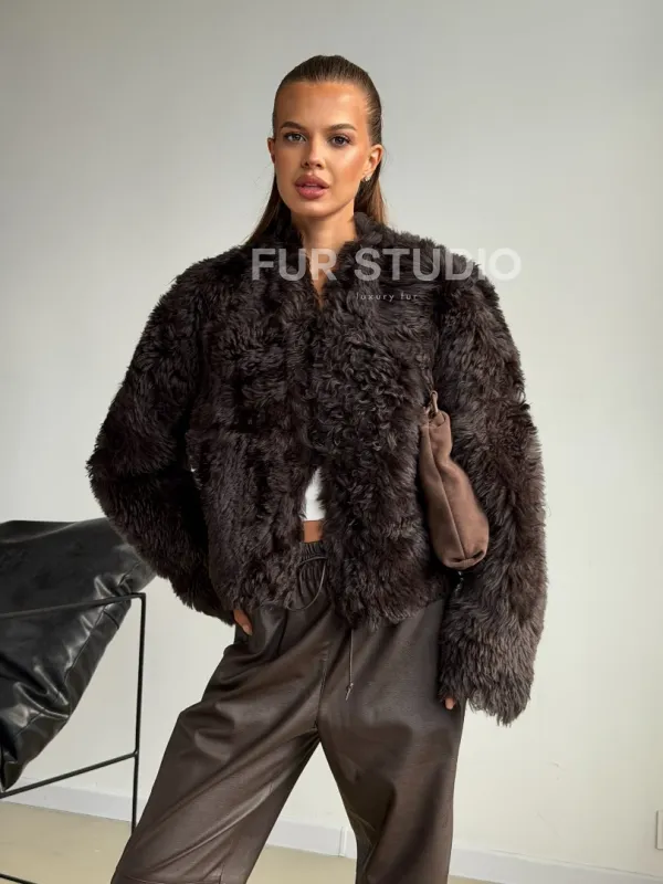 Дубленка кроп-топ из овчины калган 102600