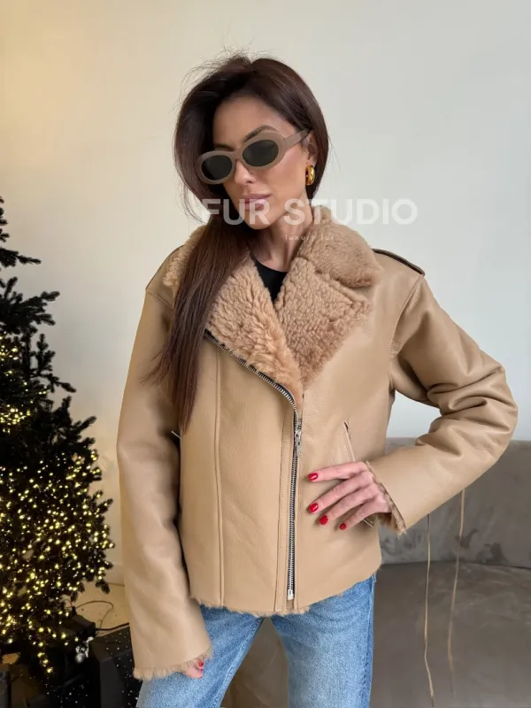 Дубленка - куртка со шнуровкой на спине 100843