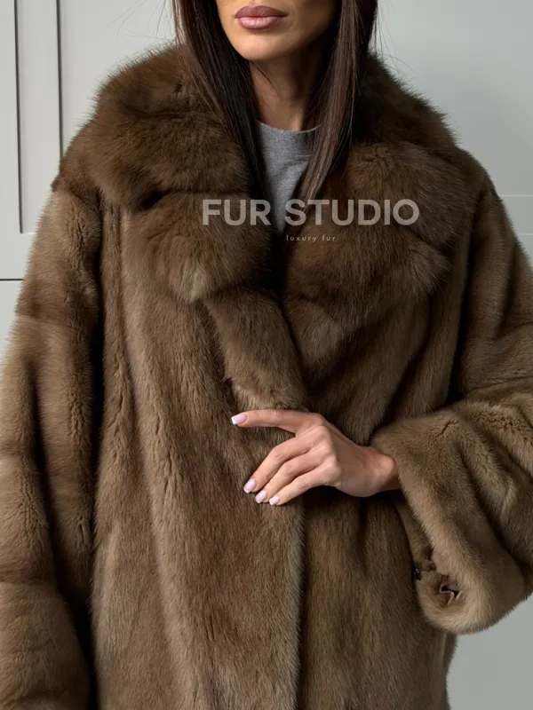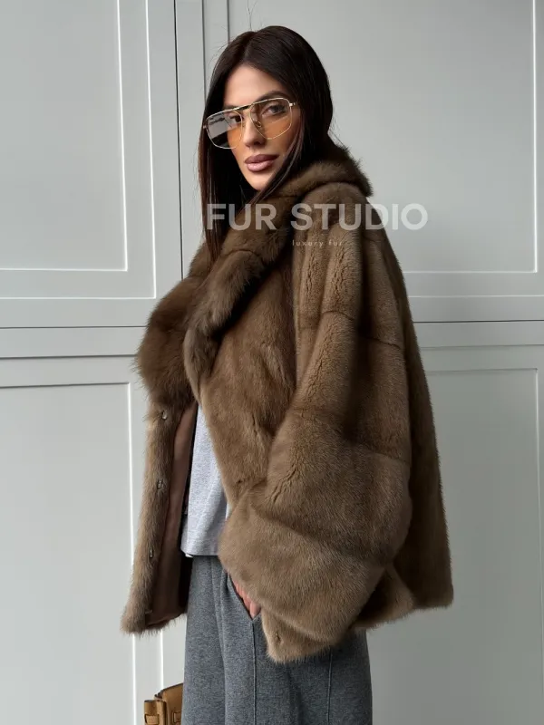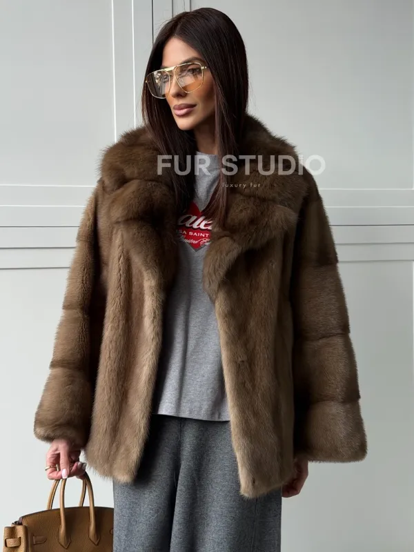 Куртка из меха норки - воротник куница доступна для покупки в нашем шоуруме Furs Studio в . У нас так же есть доставка во все города России. Добавьте немного роскоши в свой гардероб с этой шубой, которая будет служить вам многие годы.