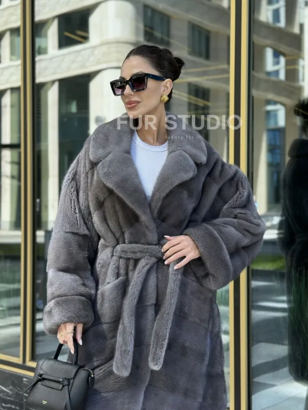 Мех данной шубы аукционная норка , цвет серый. Предлагается в размерах от 42 до 52. Длина модели 110-115 см, что выгодно подчеркивает фигуру девушек. Эта модель идеально подойдет для девушек и женщин, предпочитающих роскошные натуральные меха.