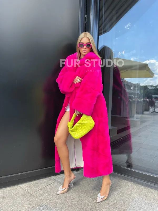 Норковая шуба в цвете фуксия длинная 100102