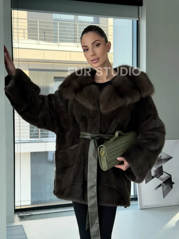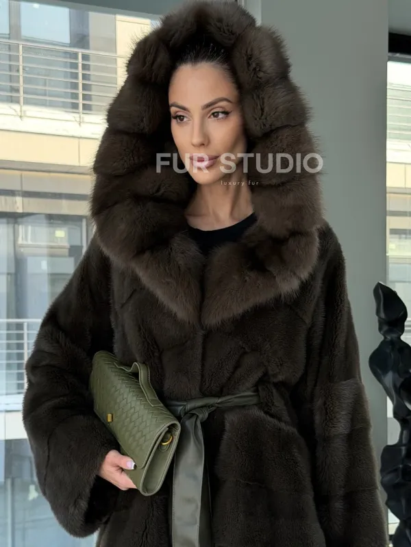 Норковое пончо шуба с капюшоном из меха куницы dark olive доступна для покупки в нашем шоуруме Furs Studio в . У нас так же есть доставка во все города России. Добавьте немного роскоши в свой гардероб с этой шубой, которая будет служить вам многие годы.