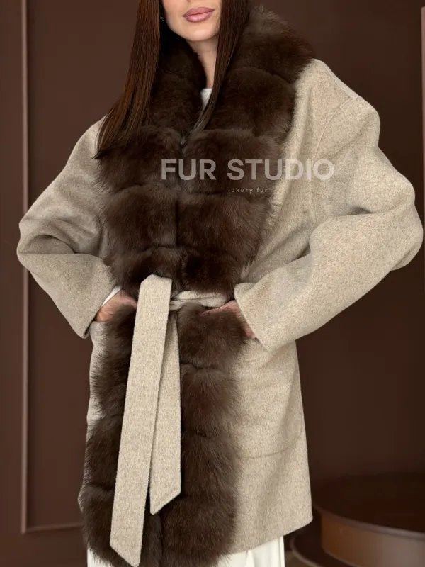 Пальто с отделкой из меха песца 102908