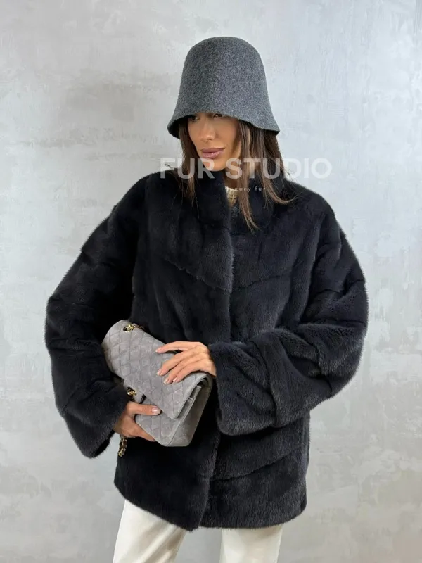 Полушубок норковый - темный графит 102416