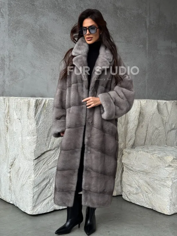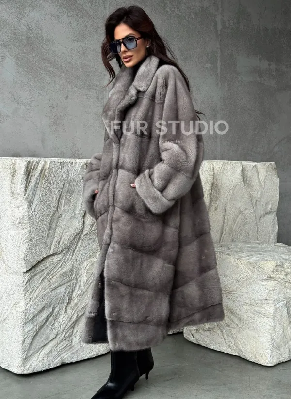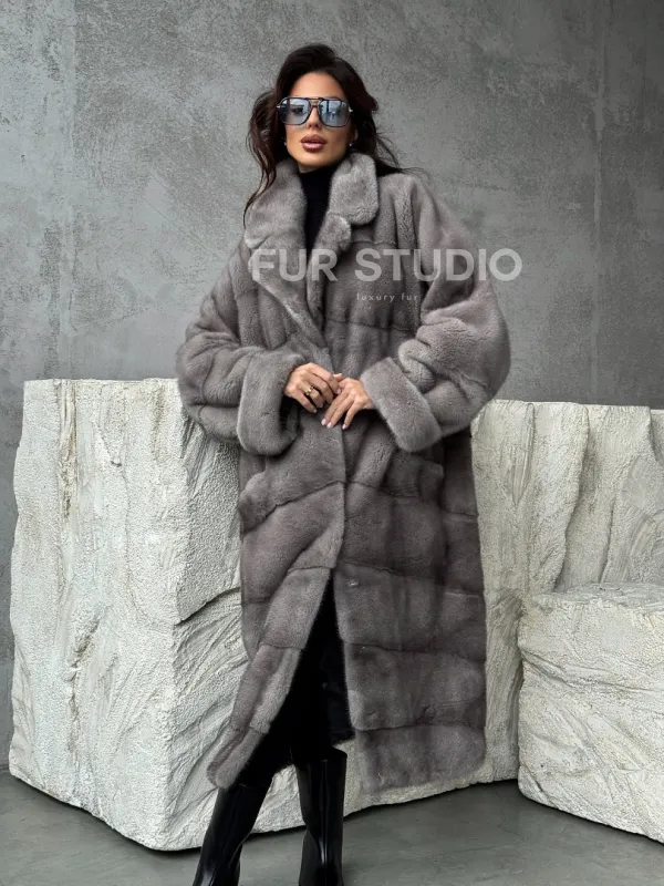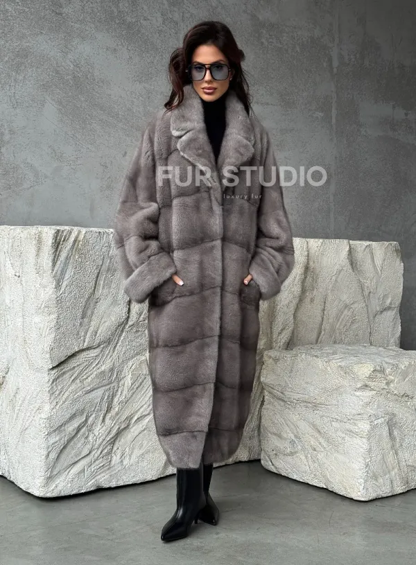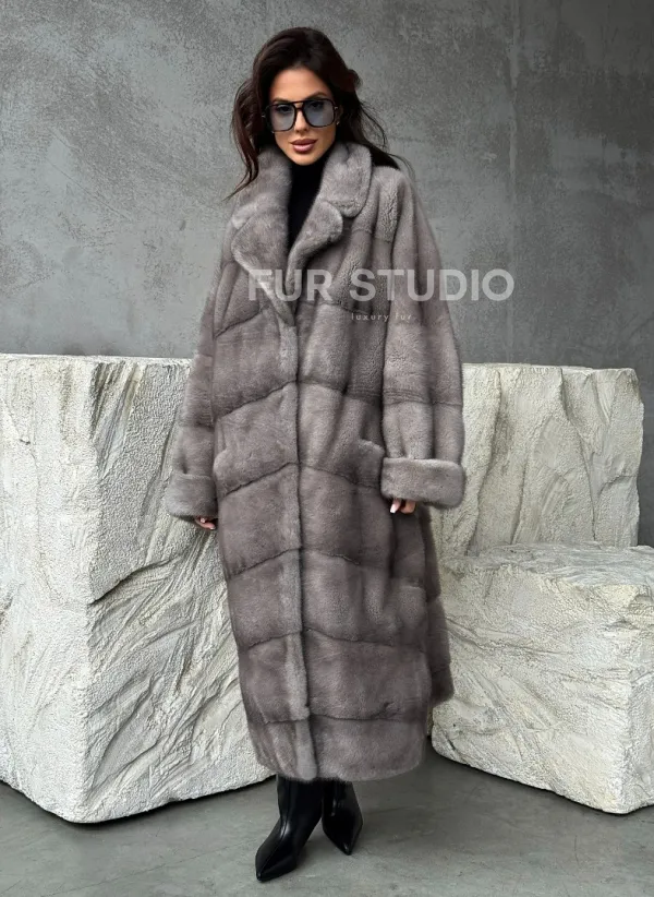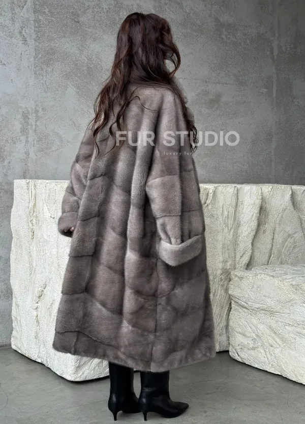Серая норковая шуба oversize 102485