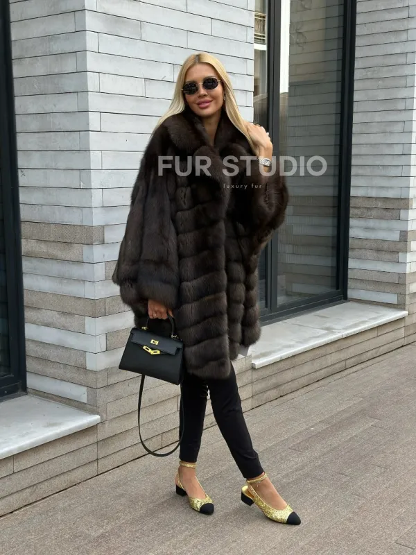 Шуба из натурального меха баргузинского соболя (седина 2) 100503