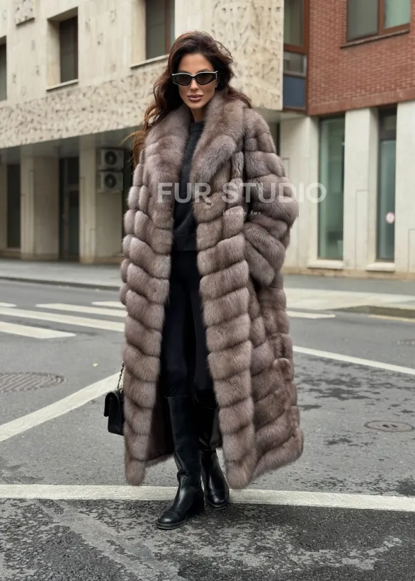 Мех данной шубы лесная куница, цвет натуральный. Предлагается в размерах от 42 до 50. Длина модели 125-130 см, что выгодно подчеркивает фигуру девушек. Эта модель идеально подойдет для девушек и женщин, предпочитающих роскошные натуральные меха.