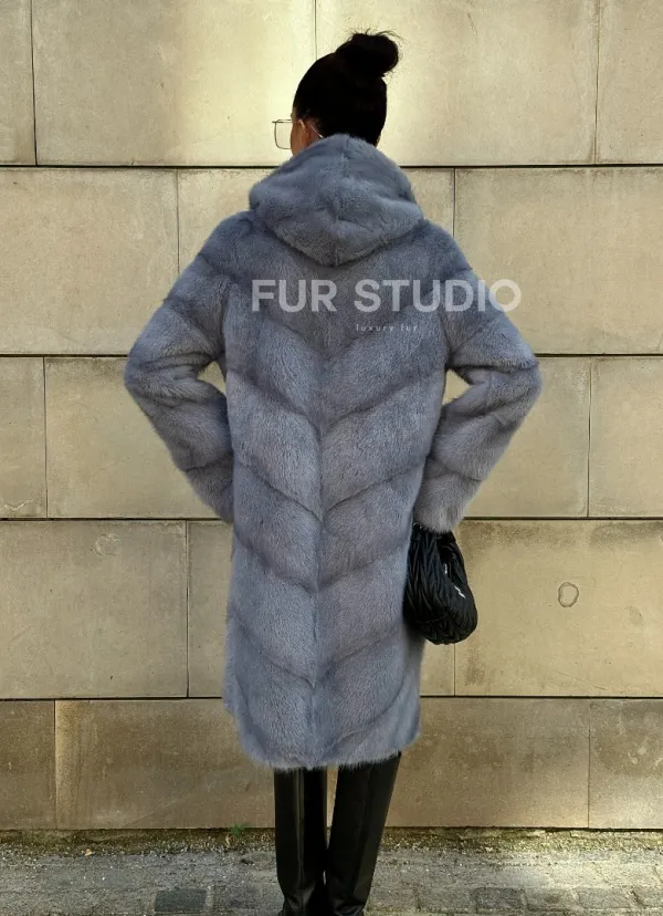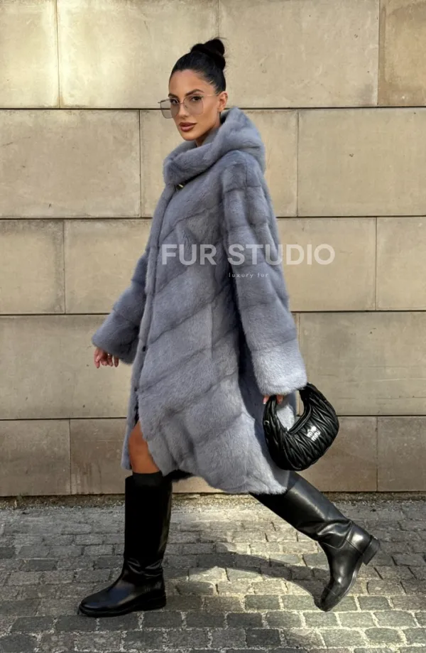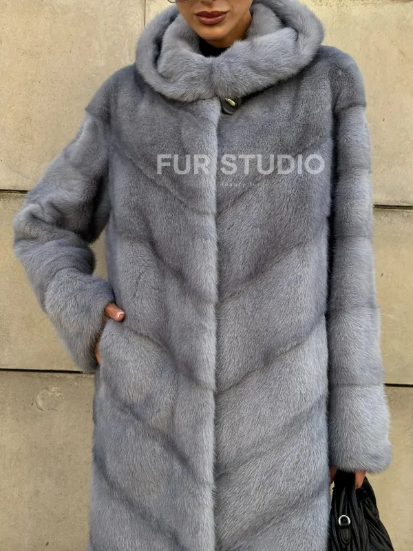 Шуба midi из меха норки с капюшоном, рукава трансформер 101059