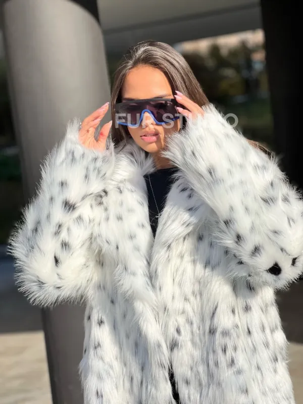 Удлиненная шуба из экомеха под рысь 100294