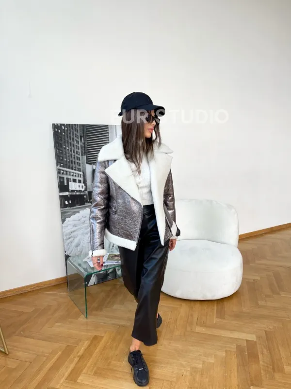 Дубленка овчина короткая - серебро 100176